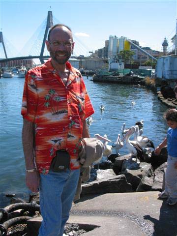 Sunday, 6 April 2003 - (31 KB) Tom poses with some new friends at the fish market- there goes the neighborhood |