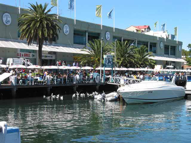Sunday, 6 April 2003 - (34 KB) Busy busy busy - people enjoying their waterfront lunches at the fish market |