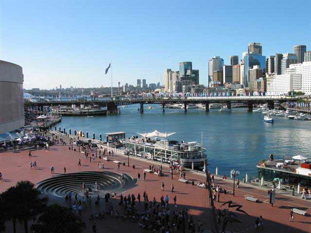 Sunday, 6 April 2003 - (44 KB) The walkway from the market - a high view of Darling Harbor |
