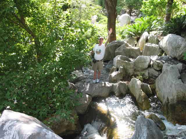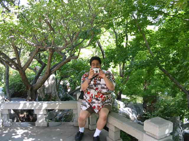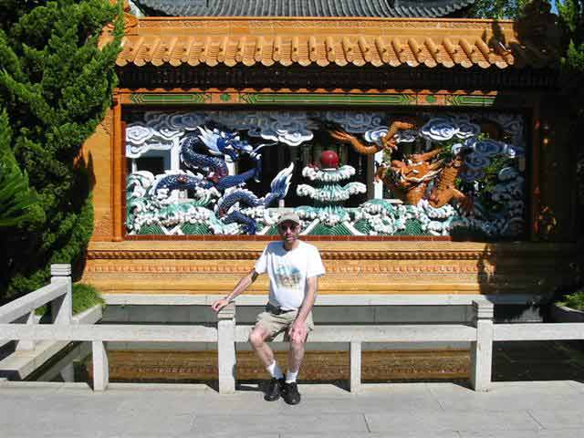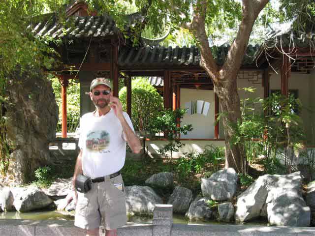 Monday, 7 April 2003 - (35 KB) Tom outside the Chinese Friendship Garden |