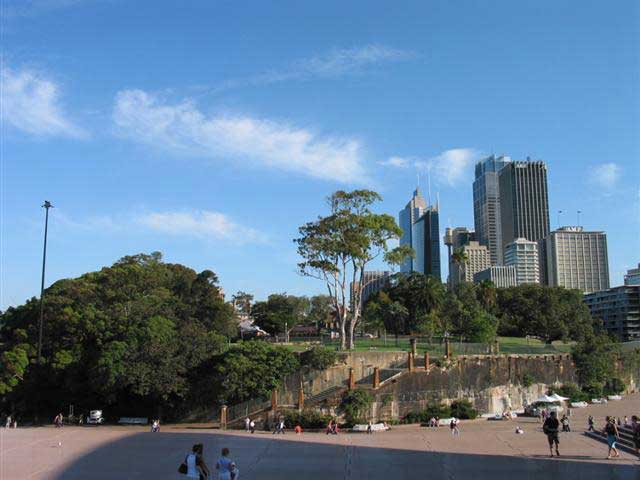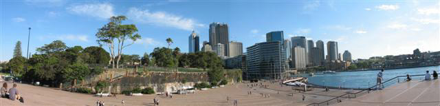 Monday, 7 April 2003 - (26 KB) Panorama view of the Royal Botanic Garden from the steps of the Sydney Opera House |