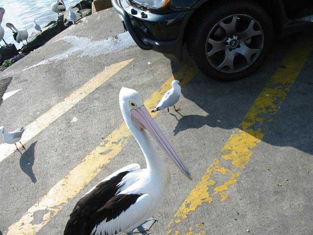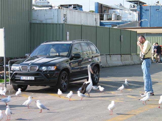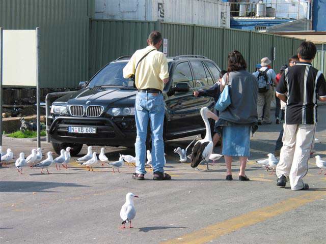Saturday, 12 April 2003 - (30 KB) Tom's just fascinated with the pelicans at the Sydney Fish Market |