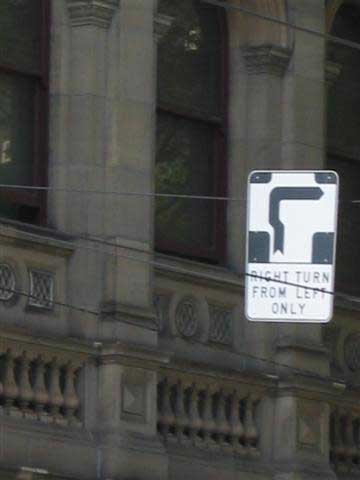 Saturday, 19 April 2003 - (13 KB) Hmmm, only in Melbourne would you go to the far LEFT lane in order to turn RIGHT. Go figure. |