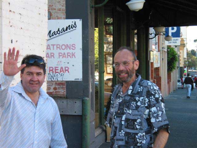 We flew from Cairns to Melbourne Friday afternoon. Melbourne is where Stavros' family lives. We arrived too late in the evening to connect with any of them so we walked a few blocks fom our hotel (another Ibis, though MUCH nicer) to the strip of Little Bourke Street called Chinatown for dinner. We ended up in the Orchids Garden Restaurant where we couldn't even reach for a serving spoon without a flock of waitresses swooping in to serve us. The service was phenomenal, and the food was extremely good. We later learned that we happened on one of the better chinese restaurants to dine. | |
